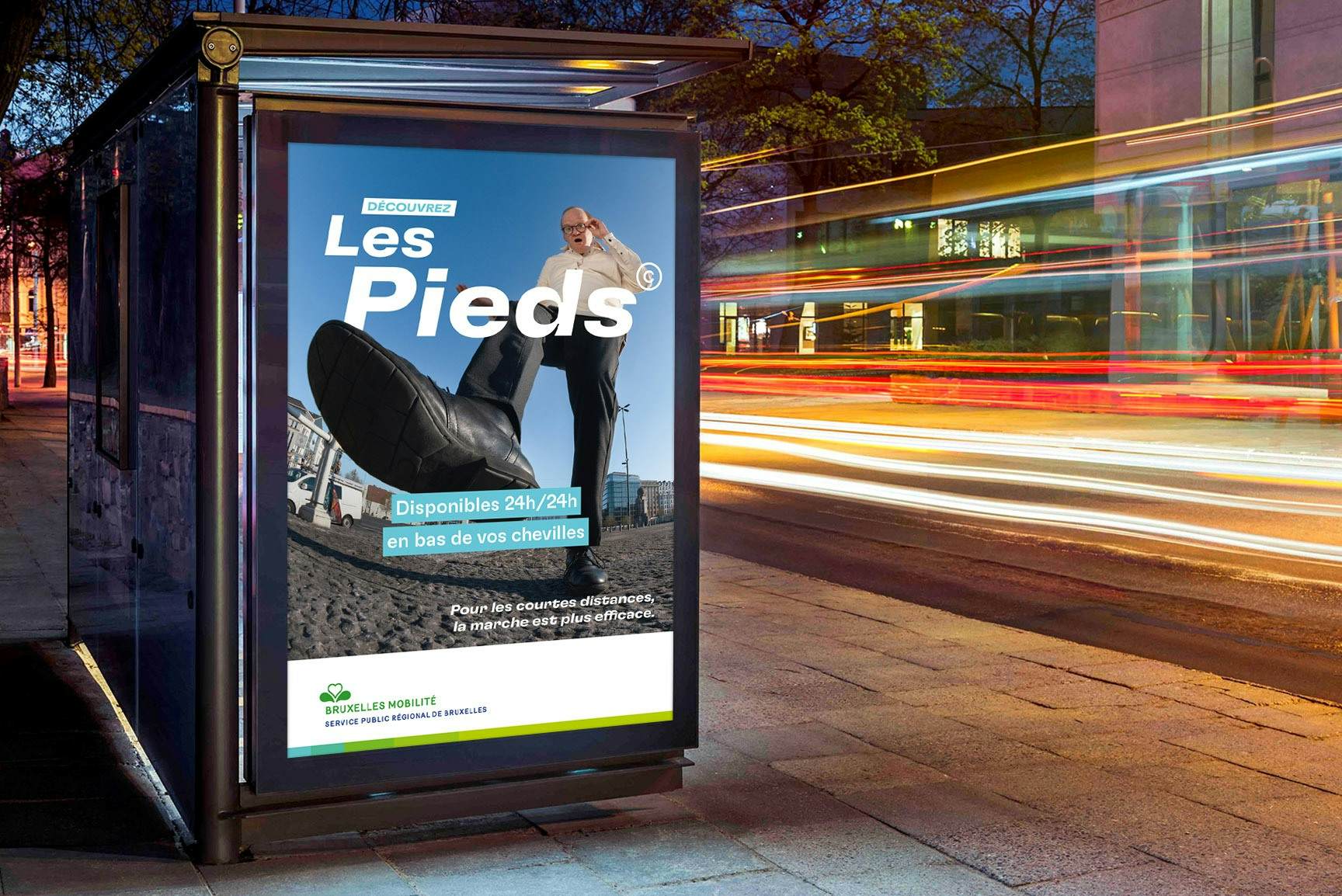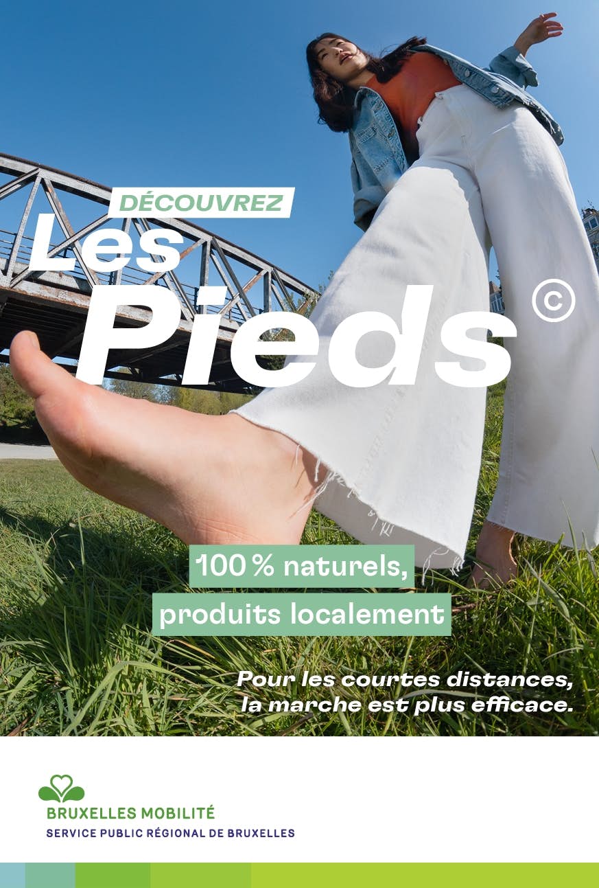Les Pieds©... cette technologie unique, issue de longues recherches et modélisations, inspirée du passé et pensée pour le futur ! Les Pieds© sont gratuits, produits localement, 100% naturels et disponibles 24h/24. Début mai 2021, Bruxelles Mobilité a lancé une campagne de sensibilisation « second degré » pour revaloriser la marche comme mode de déplacement.