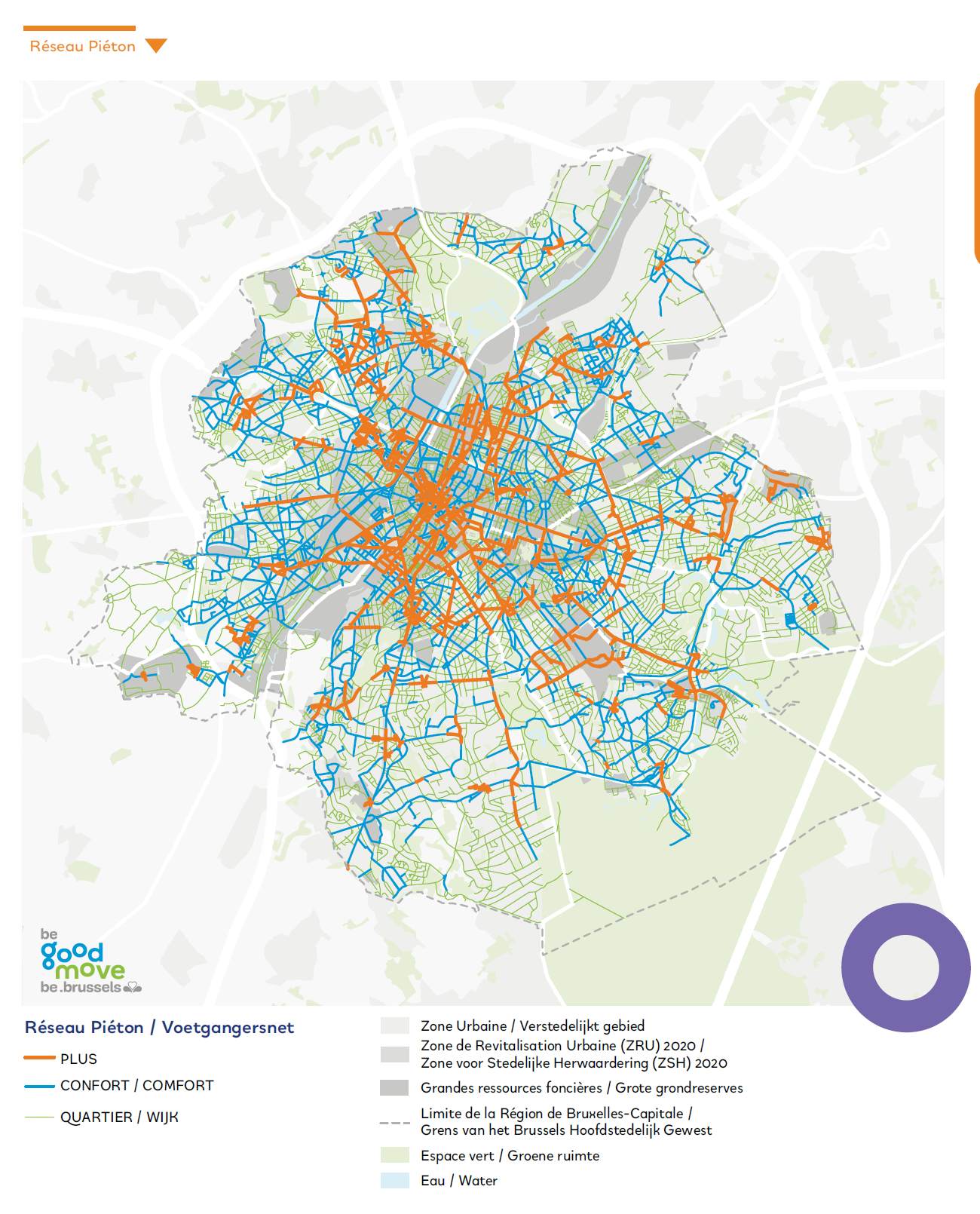 Good Move prévoit la création de magistrales piétonnes sur environ 11,4 km (sans compter les places publiques) à l’échéance 2030.
